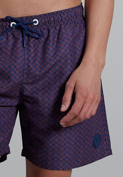 Leuke zwemshorts, uiteraard ook uitstekend overdag als shorts te dragen. De CECEBA badmode is gemaakt van 100% gerecycled materiaal. Bijzonder belangrijk zijn de eigenschappen; UV-, chloor- en zoutwaterbestendig. Het design is met een all-over print van rode kleine cirkels op een navy blauwe ondergrond. In de binnenzijde heeft het een mesh binnenbroekje. De boord is voorzien van een brede elastieken boord met een extra aansnoerkoord. Aan beide zijden zit er een insteekzak. En op de achterzijde links zit een extra klepzakje. Verder is de zwemshort voorzien van kunststof watergaten waardoor overtollig water sneller uit wegloopt zodra je uit het water stapt. De lengte is ca. 50 lang. Gemaakt van 100% gerecycled polyester. Zie onderaan de pagina de bijbehorende maattabel.
