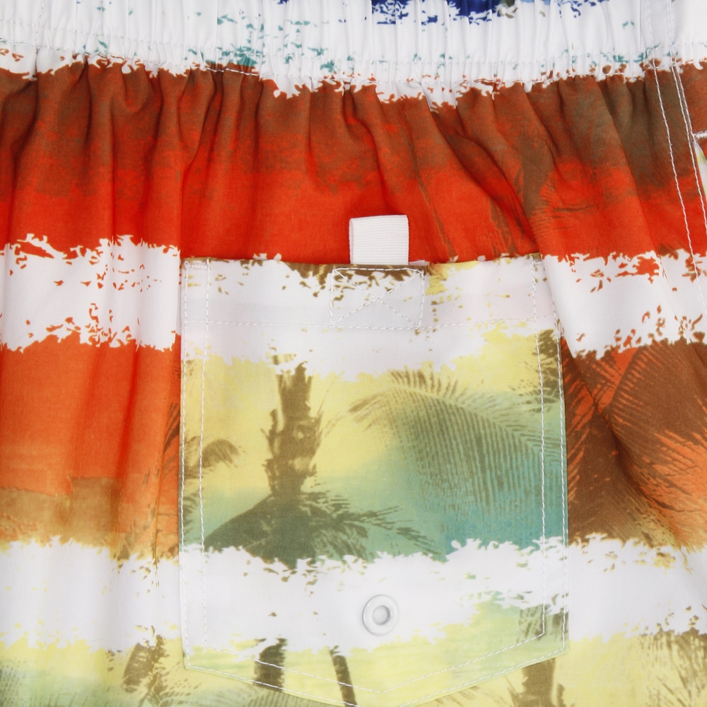 Kleurige zwemshort grote maten, in bonte kleuren met op de achtergrond palmbomen. Met wit binnenbroekje en twee ruime insteekzakken, plus op de rechter achterzijde een klittenbandzakje, zie detailfoto's. Met brede elastieken boord en wit aansnoerkoord. Van 100% polyester. Let op: de Ed Baxter zwemshorts vallen ruim uit, gelieve goed na te meten.